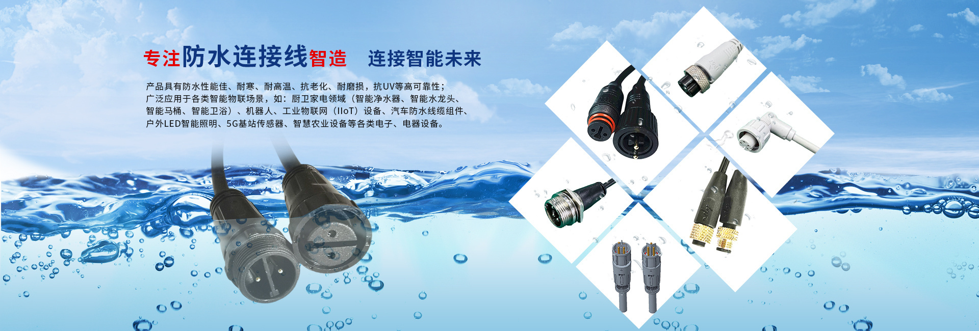 聯達優的產品目前廣泛應用于智能物聯場景:在廚衛家電領域,為智能凈水器、智能水龍頭、智能淋浴設施及智能馬桶等智能涉水設備提供支持水質監測數據實時傳輸的防水連接方案;在智能硬件方向,開發適用于各類服務機器人、工業機器人及各類工業物聯網(IIoT)設備的抗干擾高速傳輸防水線束;針對智慧出行的不斷升級需求,推出符合車聯網標準的防水汽車線纜組件;同時為戶外LED智能照明系統5G基站傳感器、智慧農業設備等場景提供定制化防水連接方案;以及特別研發的IPX7-IP68級智能防水連接器,集成微型化傳感接口,可兼容溫濕度、壓力等智能傳感器信號傳輸,滿足萬物互聯時代對設備環境適應性與數據可靠性的雙重需求。